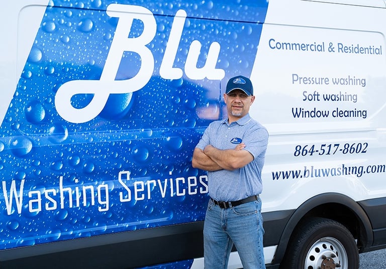 At Blu Washing Services, we specialize in commercial and residential washing solutions, including pressure washing, soft washing, and window cleaning, ensuring customer satisfaction in Greenville, SC, and surrounding areas.